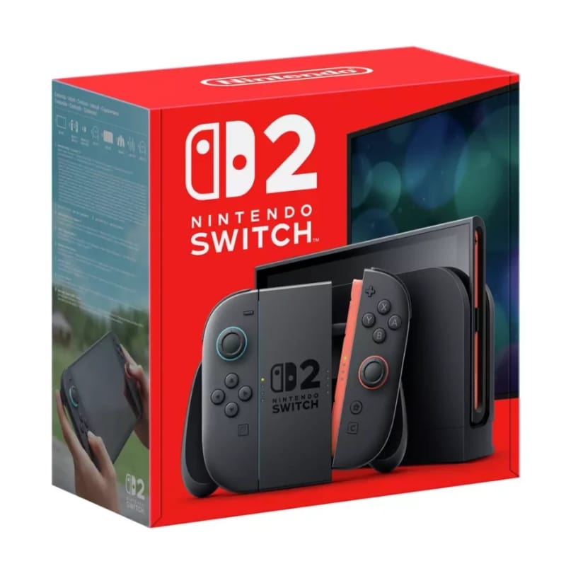 Level up your gaming with the Nintendo Switch 2! 🚀 Releasing 5th June 2025. ✨ Stunning Visuals: Experience games on a larger 1080p screen or connect to your TV for immersive 4K resolution. HDR, VRR and up to 120fps support for vivid colour and smooth gameplay. 🎮 Innovative Control: New Joy-Con 2 controllers with magnetic connectors. Use them as a mouse in compatible games. 💬 Game Chat: Chat with friends while you play. Share your screen or connect face-to-face with the camera (sold separately). 💾 Storage: 256GB internal storage (portion reserved for system use). 📦 In the Box: Includes Switch 2 console, Joy-Con 2 controllers (L/R), straps, dock, grip, AC adapter, and Ultra High Speed HDMI cable.